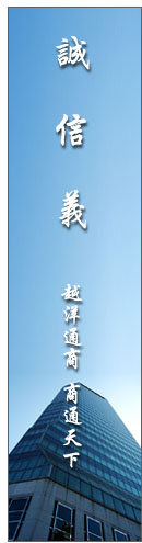 经商是为了赚取中间利润,这无可厚非,但要取之有道。天道酬勤,越洋通商株式会社始终秉承:诚为公司的设立之根本,信为公司招贤纳士的基础,义为结交天下广大客源的先决条件。取自己的财,赚应得的利,广交朋友,共谋发展,回馈社会。